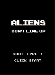 キーボードの左右キーで移動、Zキー(ショット)で画面上部に現れるエイリアン達を全て倒してステージクリア。ゲームスタート前に[ 上・右・左 ]キーでプレイヤーのショットタイプを選べます。5面クリアで1面に戻ります。