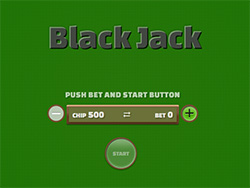 ポイントをかけてスタートでゲーム開始するブラックジャック風カードゲーム。